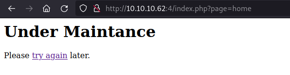 echo "<h1>Under Maintance</h1><p>Please <a href=\"http://" . $_SERVER['SERVER_ADDR'] . ":4/index.php?page=home\">try again</a> later.</p>";