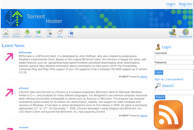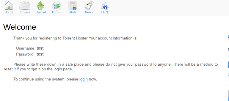 El escaneo con Dirb, muestra un directorio llamado ‘torrent’, al parecer es un CMS de compartición de archivos torrent.